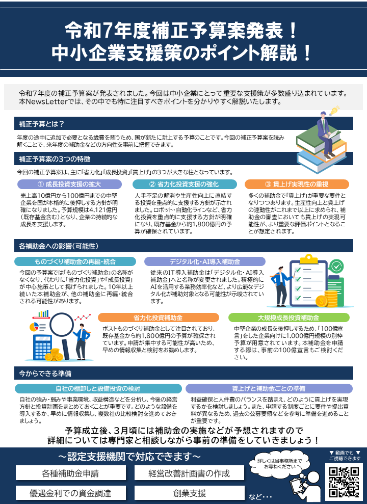 令和7年度補正予算案発表!中小企業支援策のご案内